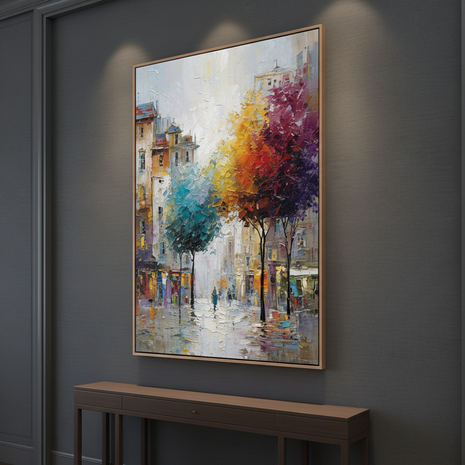 All our paintings are hand-made by our artists using high-quality materials such as thick oil, acrylic paint, and cotton canvas, ensuring durability and vibrancy.